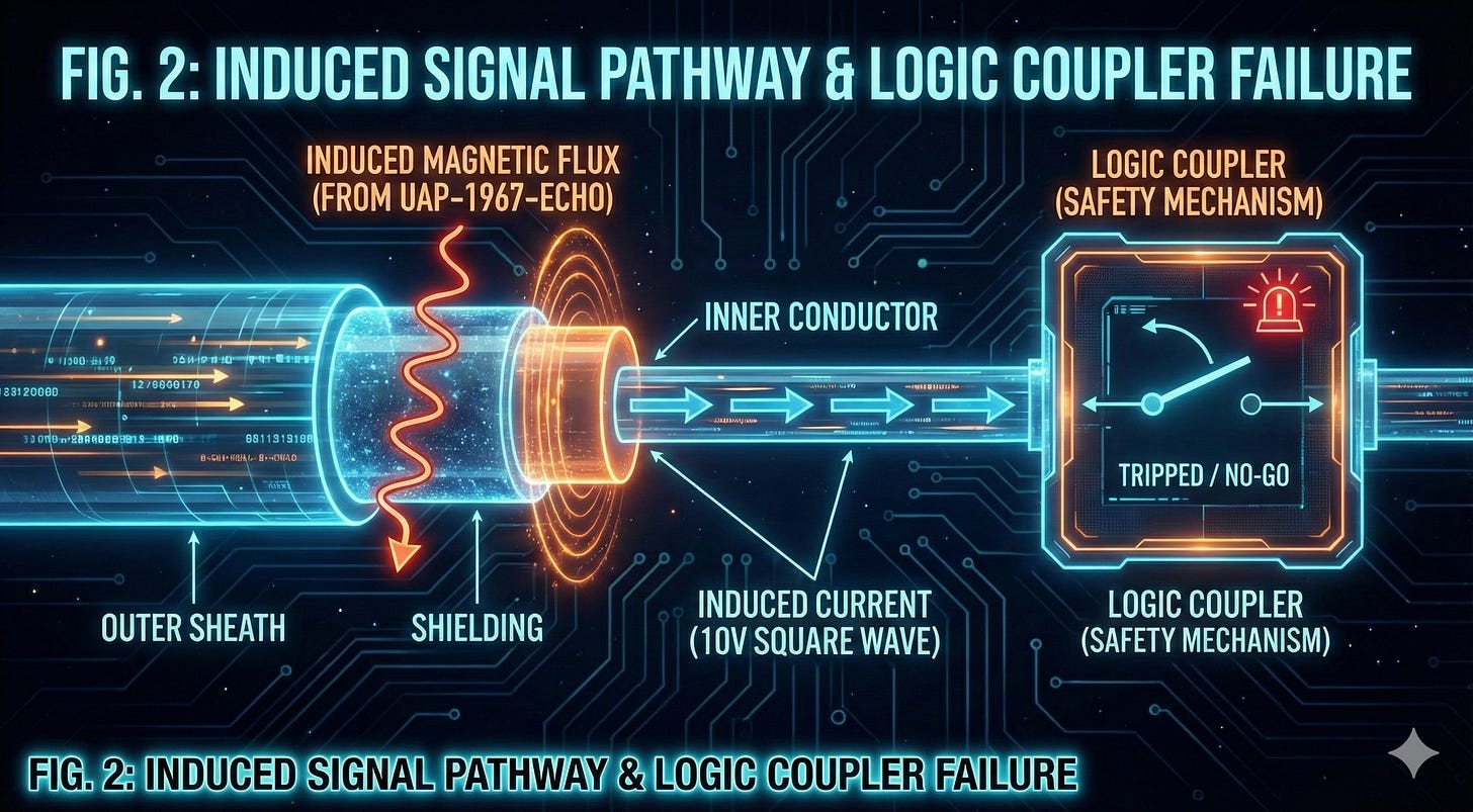 Engineering analysis by Boeing and Air Force Systems Command identified the cause as an external electromagnetic signal of specific frequency and waveform that bypassed shielded underground cabling. The data suggests the operator possesses “Root Access” to analog defense infrastructure.