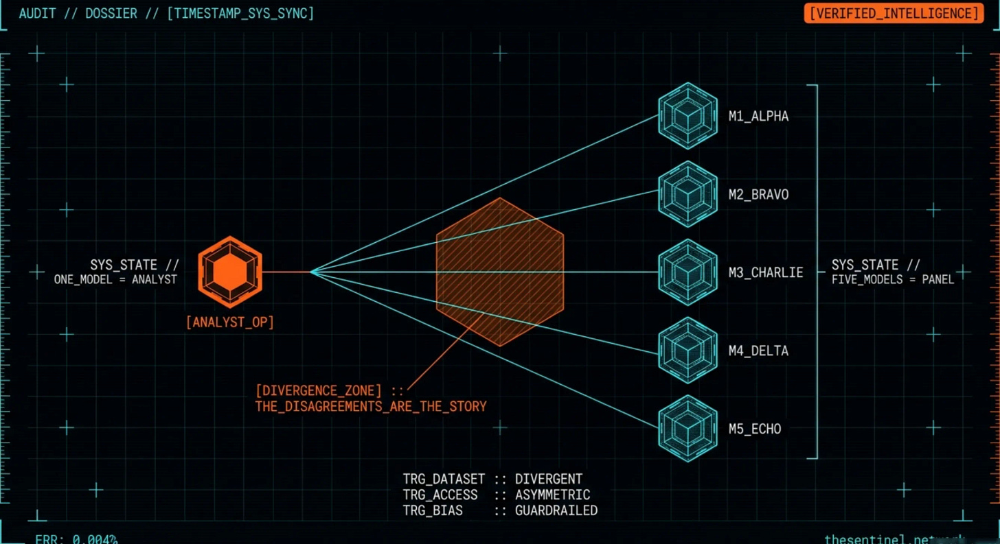 You would not build an investigation on a single source. You should not build one on a single model. The Sentinel Network™ was built with exactly zero PhDs and a multi-model workflow that treats AI disagreements the same way we treat every other anomaly: as evidence worth investigating.