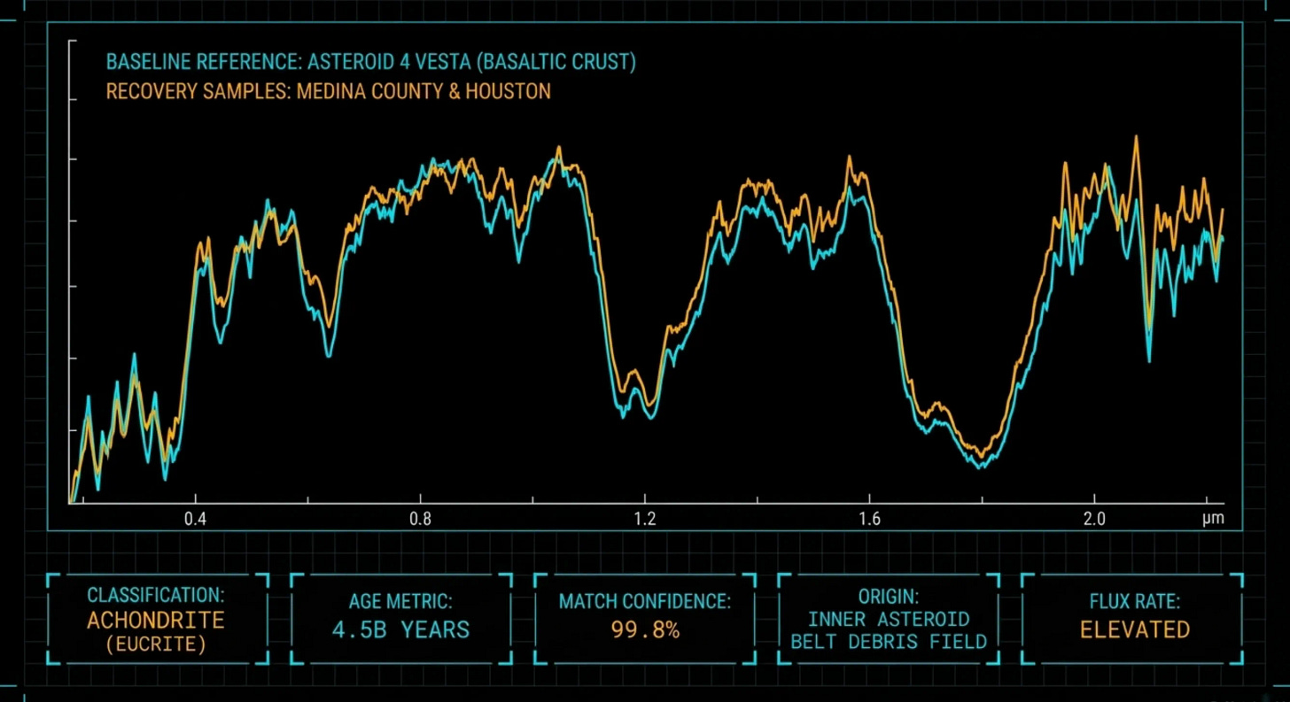 The Houston fragment is pending classification. If it turns out to be a different meteorite type, that tells us this cluster draws from multiple parent bodies. If it is also an achondrite, that raises a question nobody is publicly asking: is something happening in the inner asteroid belt, specifically in the Vesta family of debris, that is sending an elevated flux of material into Earth-crossing orbits right now?