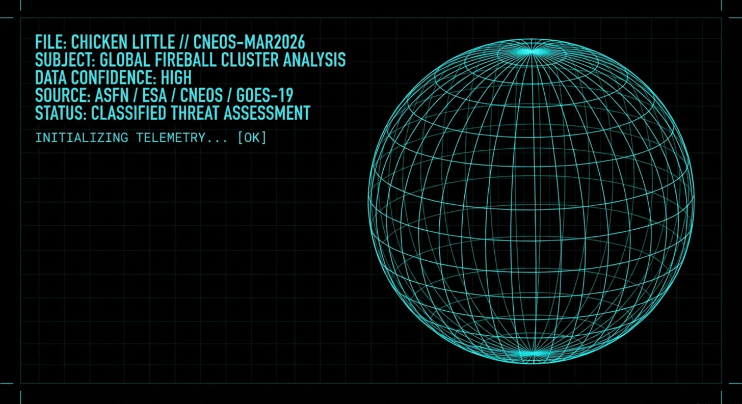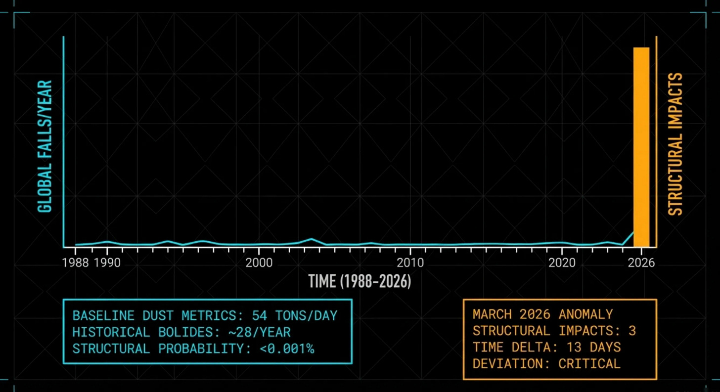 SENTINEL ASSESSMENT: The frequency of fireball events in March 2026 may fall within the upper range of natural statistical variation, amplified by improved detection infrastructure. The severity concentration is a different question entirely. Three meteorite falls. Three structural impacts. Two metropolitan airbursts. Twenty days. No shower. You cannot observe a meteorite through a kitchen ceiling. It either fell or it did not. Three fell.