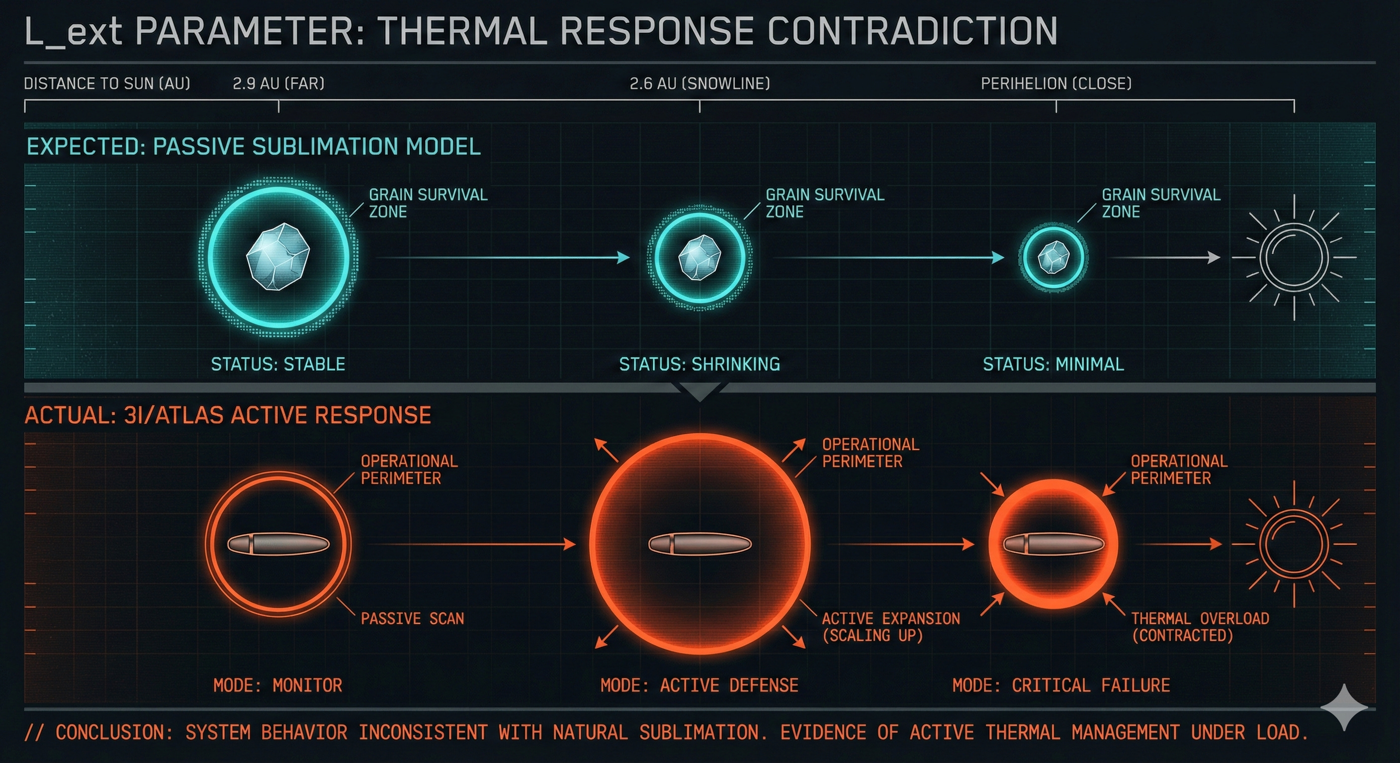 But the cumulative picture — a quiet hull surrounded by a reactive operational field, chemically unlike anything in our solar system, with directional exhaust and a threshold activation profile — doesn’t look like a snowball melting.
