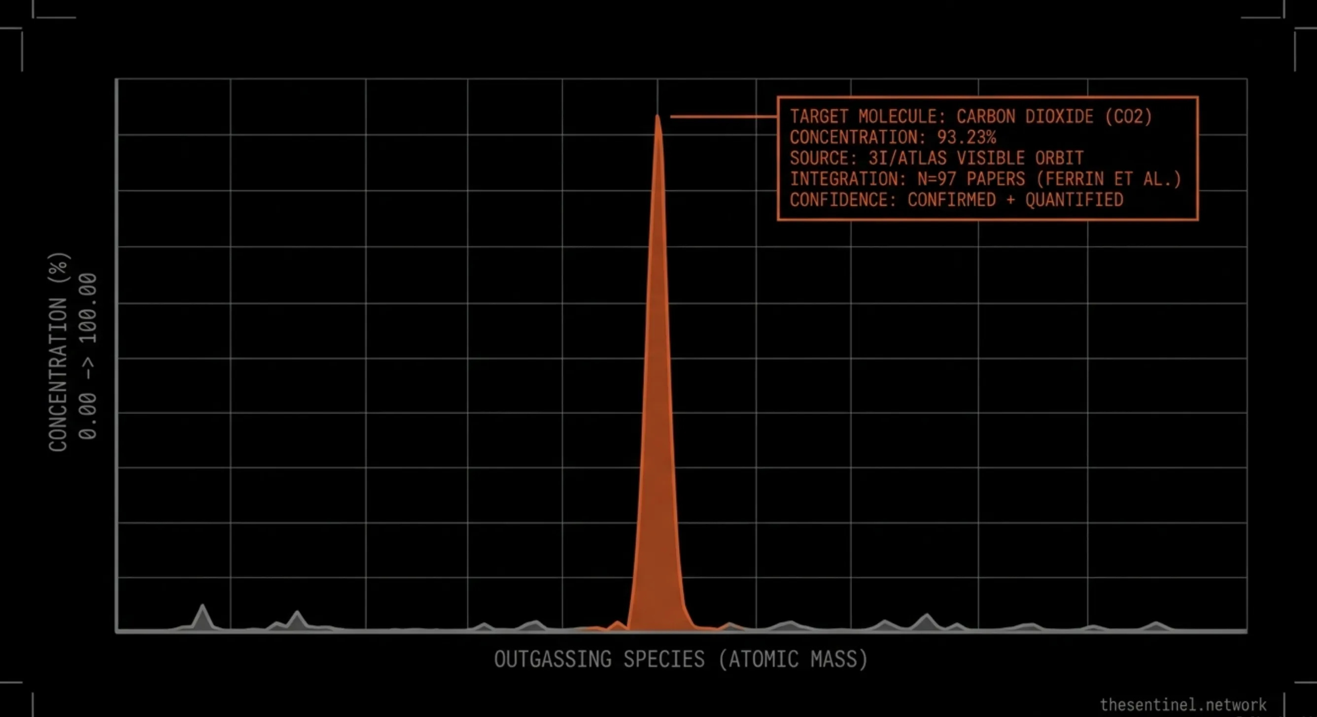 THE MASS RECEIPT delivered the total exhaust budget of 3I/ATLAS this week. Ferrín et al. compiled 97 papers, integrated every outgassing species across the entire visible orbit, and produced a number that closes the loop we opened in THE VERDICT.