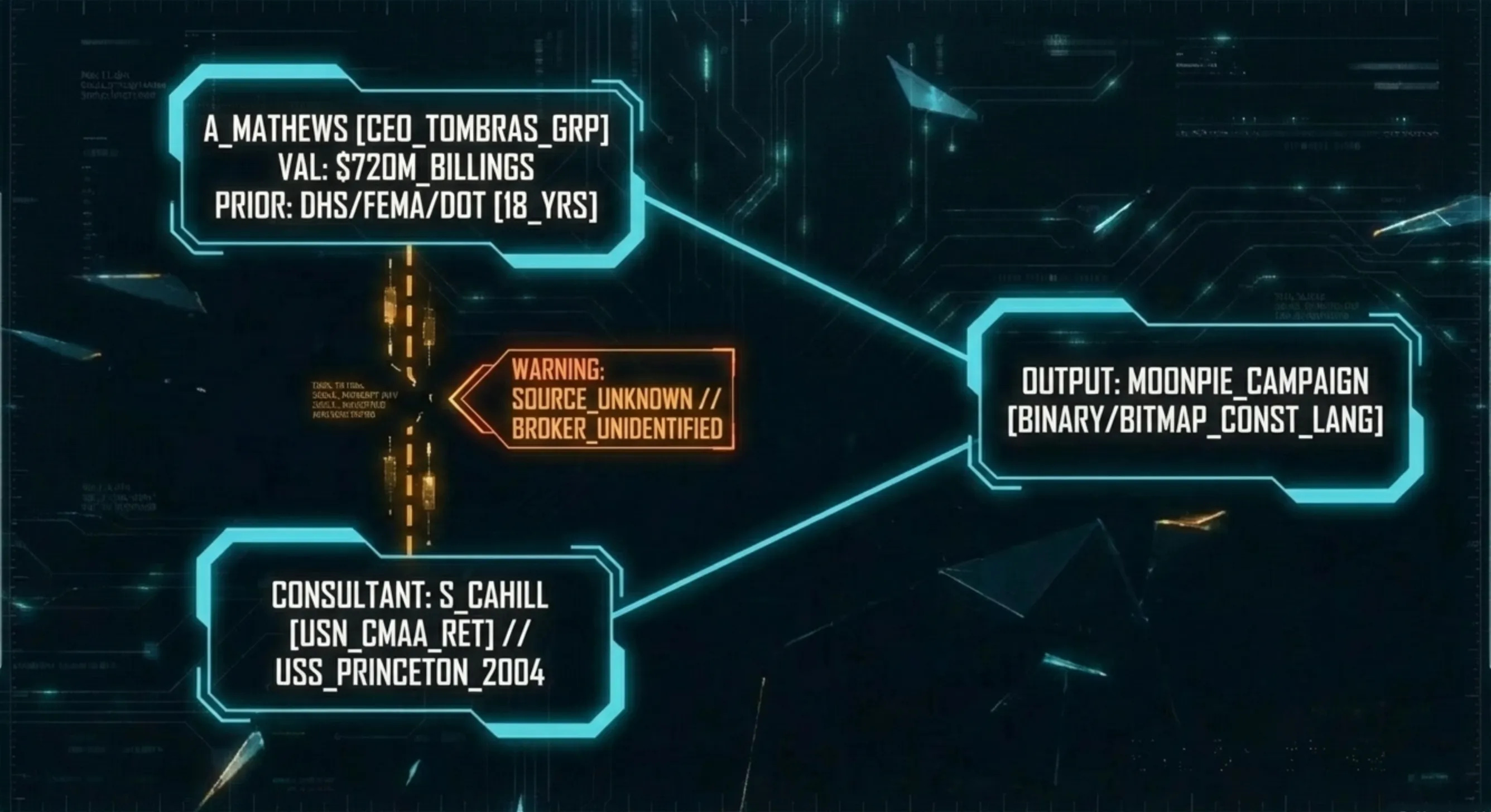 Alice Mathews, the agency’s CEO since January 2019, managed Tombras’ Washington D.C. office for 15 years and supervised the U.S. Department of Transportation / NHTSA account for 18 years. Her verified speaker biography identifies DHS, FEMA, and the EPA among the federal clients she serviced. An ad agency executive who spent nearly two decades managing federal safety and crisis communications. Then became CEO. Then her agency hired a military UAP witness to sell marshmallow pies to aliens.