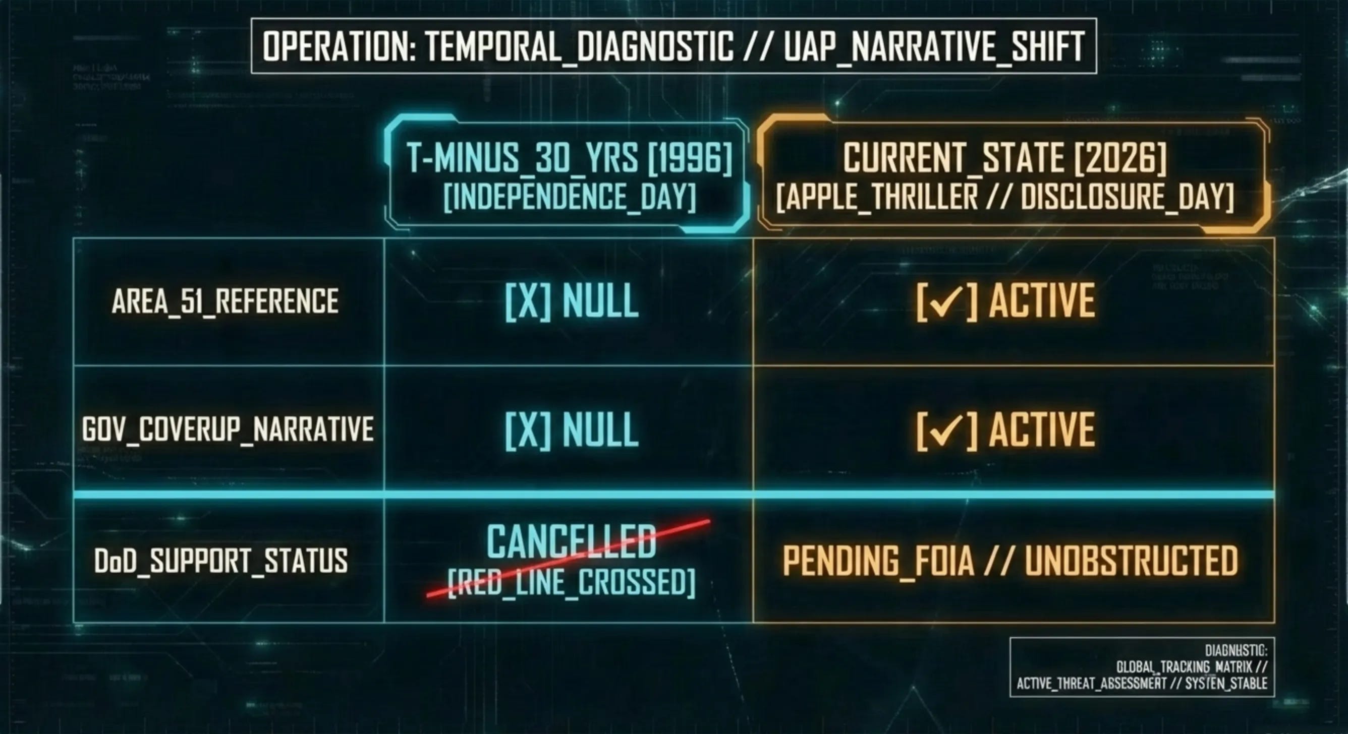 Today, Spielberg’s Disclosure Day uses the exact terminology of the UAP transparency movement as its title. Kosinski’s Apple film is built entirely around the premise that the government is hiding crashed non-human craft. At least five major UAP-themed productions are in active development.