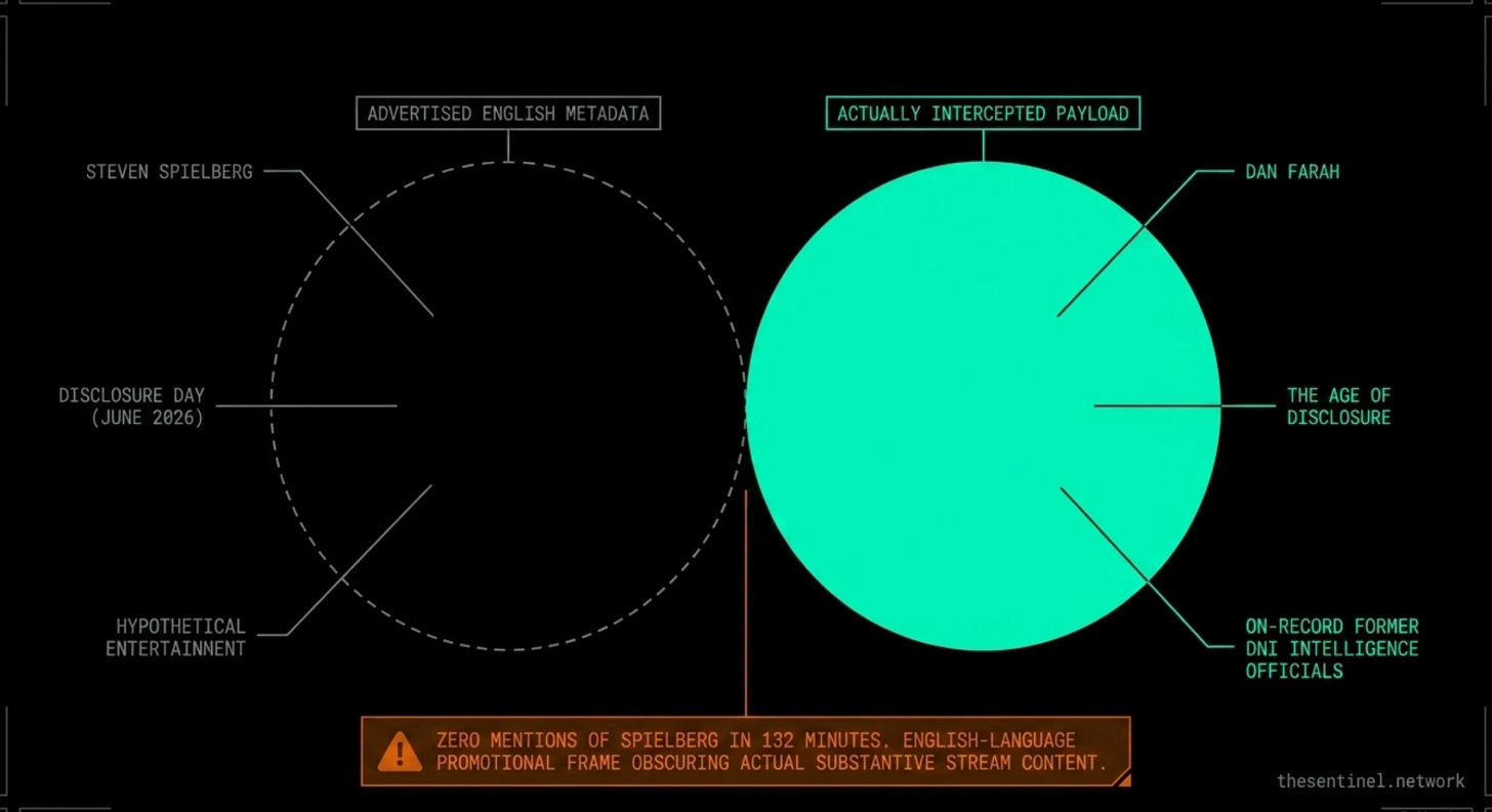 The film that actually came up was The Age of Disclosure, Dan Farah’s documentary, which is a different film by a different filmmaker with a different thesis. It is an existing documentary featuring named former intelligence officials on camera, not a hypothetical Spielberg production.