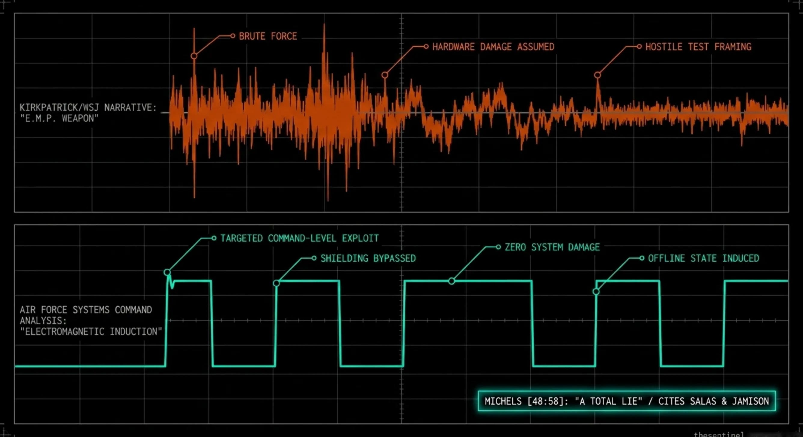 Michels responded at 48:58 with a detailed takedown of the WSJ article’s claim that an EMP weapon had been used against U.S. nuclear assets at Malmstrom in 1967, citing Lieutenant Colonel Bob Salas and Bob Jamison’s on-record testimony about the actual incident. He called the article “a total lie.”