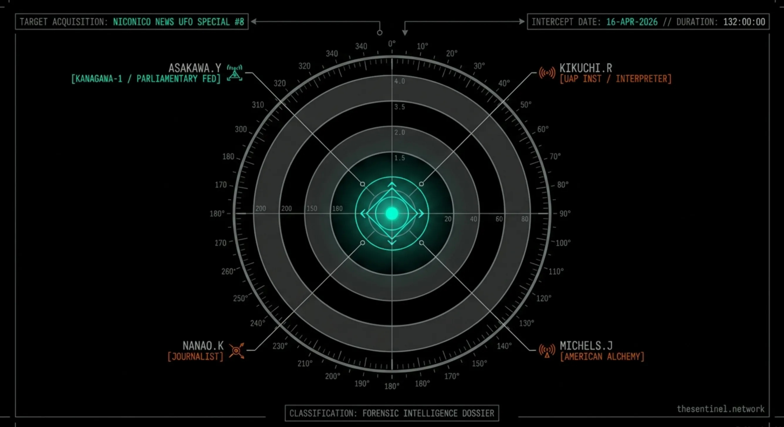 Yoshiharu Asakawa, a former House of Representatives member for Kanagawa’s 1st District and a participant in Japan’s UFO Parliamentary Federation. Ryo Kikuchi of the Institute for UAP Studies, who also served as live interpreter. And Kou Nanao, a political journalist and producer. The conversation ran for two hours and twelve minutes on NicoNico News as UFO Special #8.