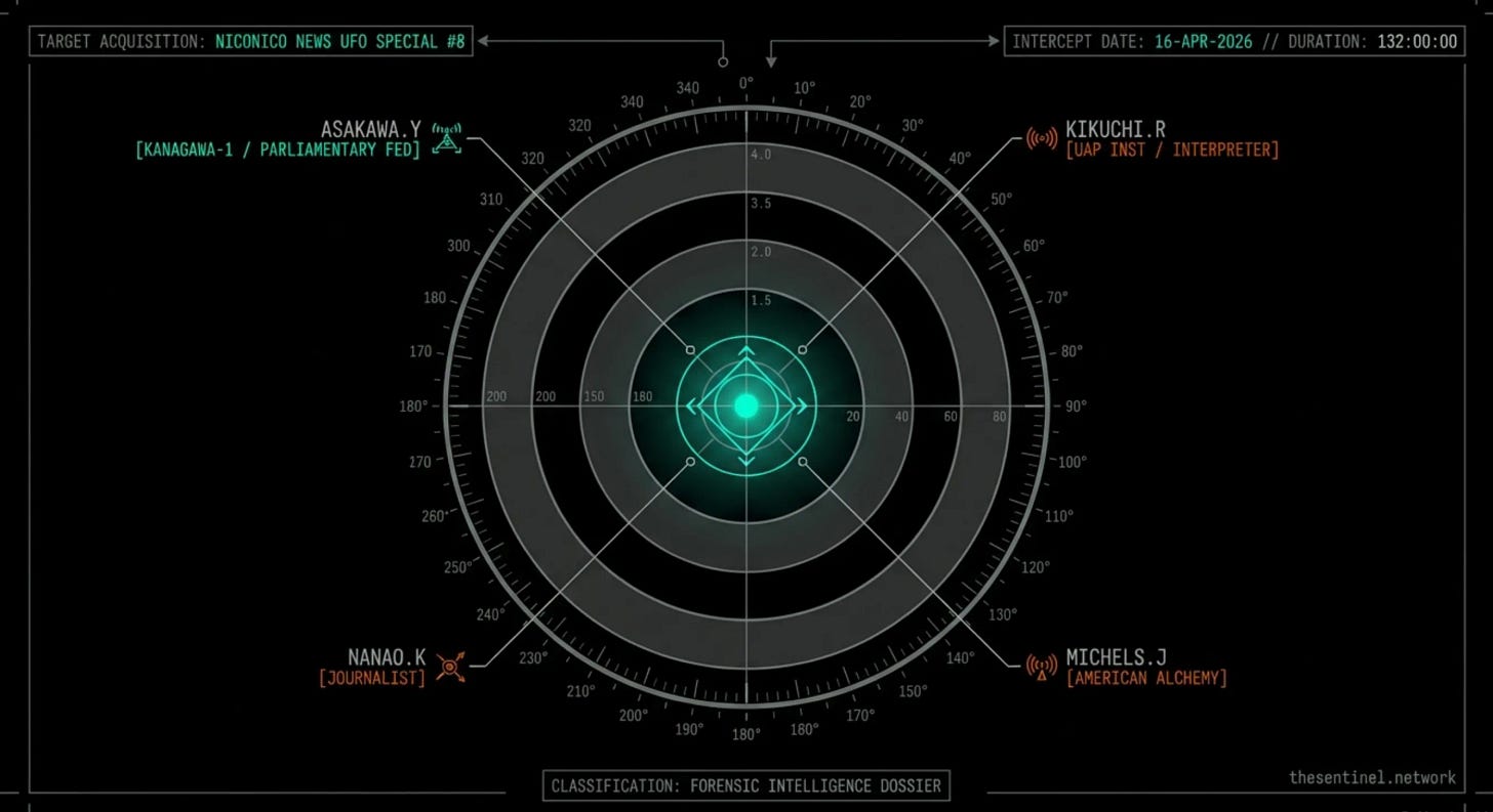 DATA CONFIDENCE: HIGH. PRIMARY SOURCE: 132-MINUTE NICONICO NEWS BROADCAST, APRIL 2026. DUAL-PASS WHISPER TRANSCRIPTION (SOURCE-LANGUAGE + ENGLISH TRANSLATION). CONGRESSIONAL RECORD CROSS-VERIFIED AGAINST CONGRESS.GOV. ALL TIMESTAMPS REFERENCE THE BROADCAST STREAM.